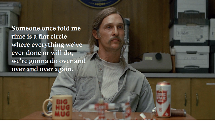 Eternal recurrence is the main concept used in Nietzsche’s works, mainly Thus Spoke Zarathustra. It is obviously portrayed by a snake eating its own tail.