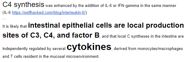 When researching C4 complement I found the old friend, cytokine.