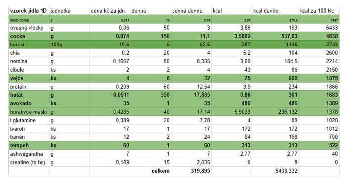 [Edit 26.07.2025] I found a budget spreadsheet for my leaky gut diet from back then. Here it is! (It is in Czech, I will later put it in AI to transcribe into english). It consisted mainly of oatmeal, chicken, egg, protein powder, sweet potatoes and a LOT of rice.