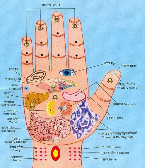 Hand acupressure points and related internal organs