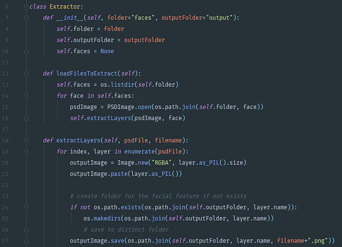 I am going to extract the features with psd_tools and Pillow Python libraries (install those with pip install psd-tools Pillow or let your IDE take care of it).