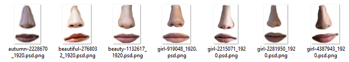 Some portrait photos I’ve downloaded are not suitable for using it as a whole, so I extract just the features I can use for the generator (i.e. only nose and lips).