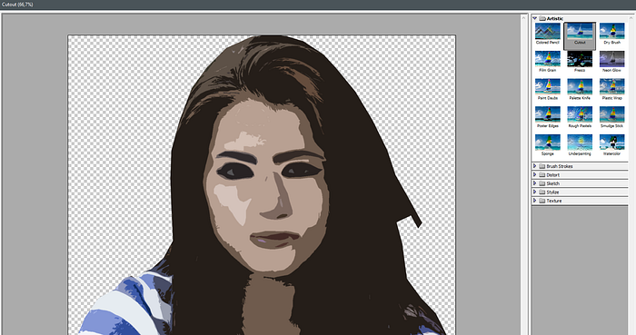 The generated images are kind of ugly, so now is the time to try to hide the imperfections with the cutout filter.