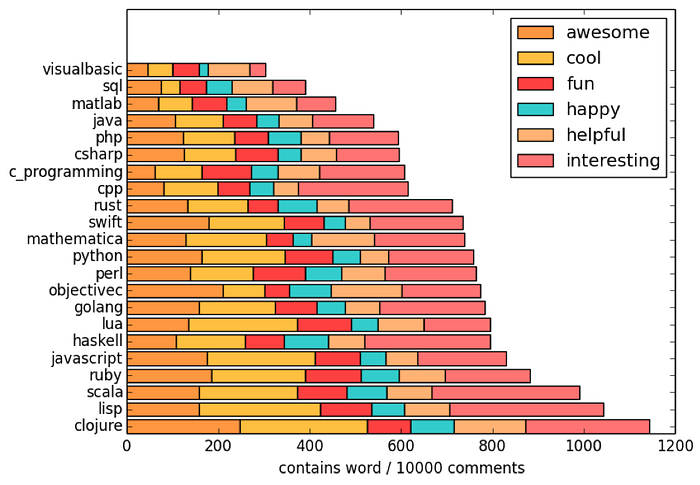 Tobias Hermann analyses the comments and the words that developers of each respective language subreddituse.