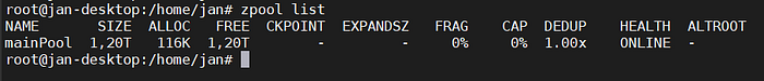 Then I used the zfstools (apt install zfsutils-linux) to create the pool, mount it to a mount-point and start using ZFS.