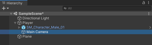 This is going to be a 3rd person controller, so I will position the camera over the shoulder and assign it as a child object to the Player.