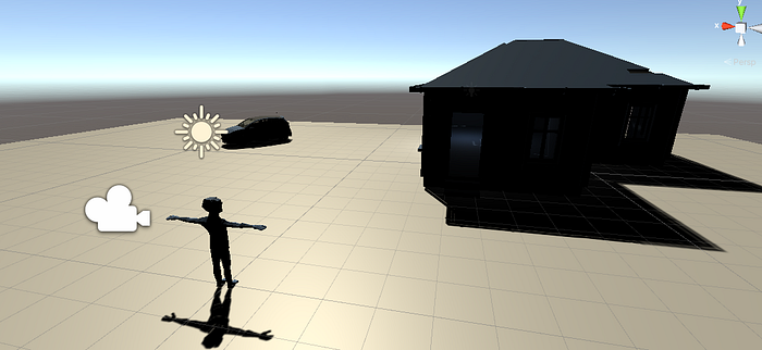 Before testing the movement I add a few placeholder objects to the empty scene, so it’s a bit more interesting to look at and walk around.