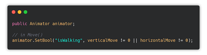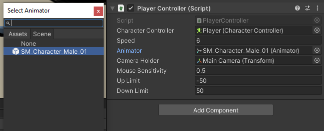Last thing I need to do is to assign the Animator to the animator variable.