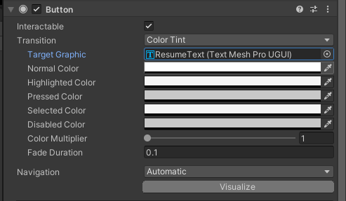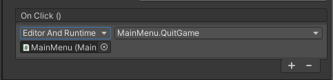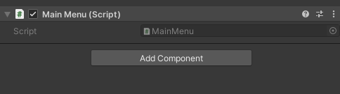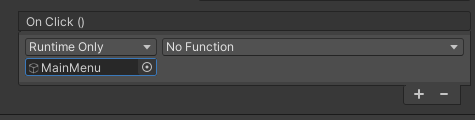 Go to the Button inspector and add a new OnClick event. Assign the MainMenu object to it, so it has access to its functions: