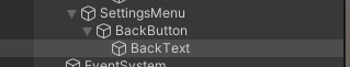 The settings button needs another submenu. Duplicate the MainMenu object and rename it and its sub-items: