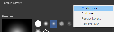 Select the Terrain object and then pick the Paint terrain option. Set it to paint texture.