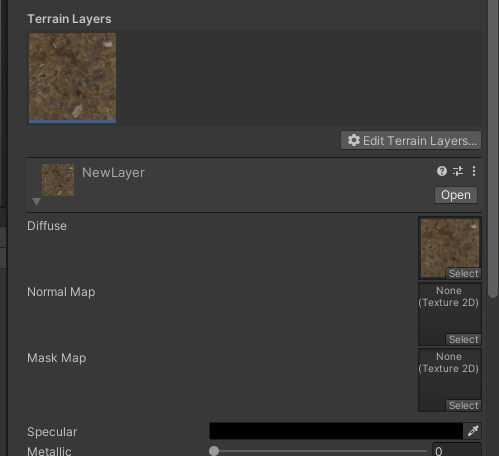 If you are using HDRP, change the metallic to match the color. Then you should see the terrain properly: