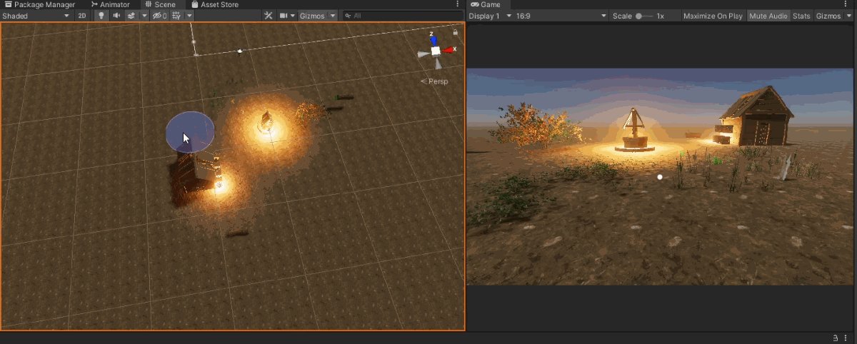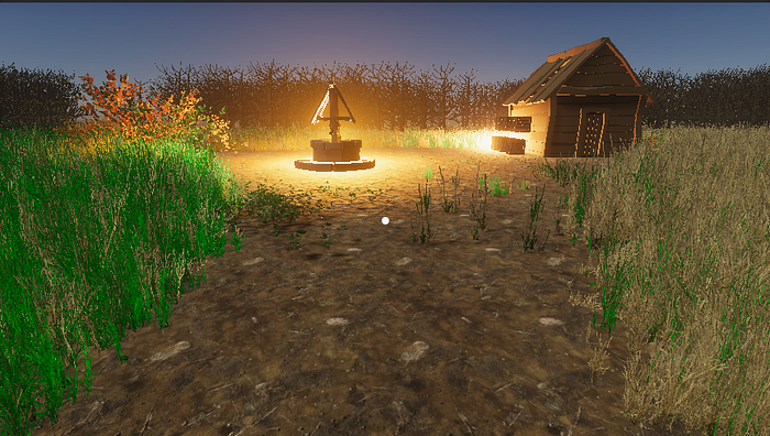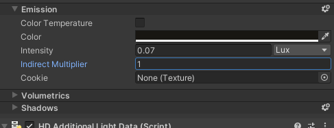 Set the Directional Light’s intensity to 0.07 in the scene for a night-time scene: