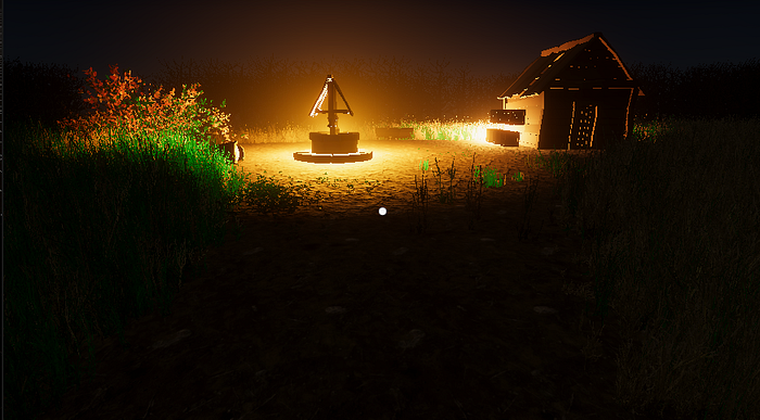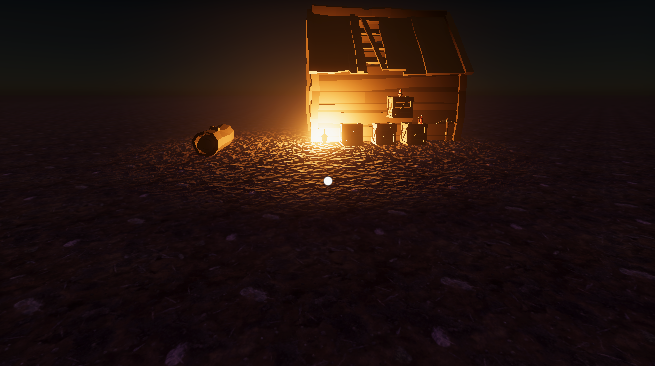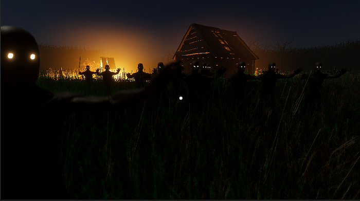 Now I turn the light back off, for it to be a night horror scene. Only the two lanterns are casting light.